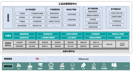 3.工業(yè)邊緣智能中心:以邊緣計算平臺為基座,提供虛擬化算力,支撐5G核心網(wǎng)系統(tǒng)、數(shù)據(jù)處理組件、AI處理組件及其他工業(yè)應(yīng)用組件的部署運行。邊緣智能中心基于超融合架構(gòu)的微型數(shù)據(jù)中心構(gòu)建,支持虛擬機及容器混合算力部署,同時支撐傳統(tǒng)工控軟件及新興的工業(yè)AIoT軟件運行。該平臺內(nèi)置的5G核心網(wǎng)系統(tǒng),提供了本地化 的5G 網(wǎng)絡(luò)接入能力,可快速構(gòu)建基于5G的OICT融合方案。