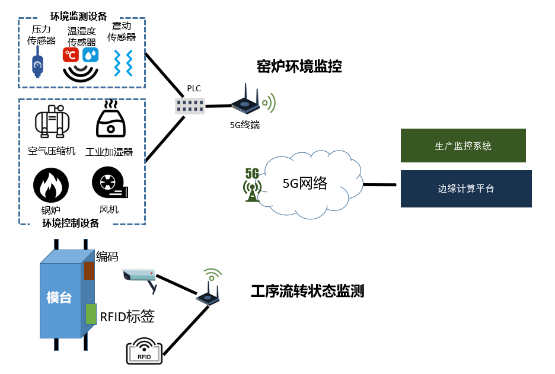 通過無線RFID技術(shù)與5G網(wǎng)絡(luò)配合實現(xiàn)生產(chǎn)進程統(tǒng)計、產(chǎn)品流程追溯,減少生產(chǎn)人員數(shù)量,將紙質(zhì)工單轉(zhuǎn)向電子工單,避免大量手寫工單,提升無紙化生產(chǎn),提升工人工作效率;