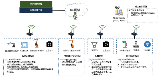 2.現(xiàn)場設(shè)備聯(lián)網(wǎng):在產(chǎn)線的各個智能生產(chǎn)設(shè)備(例如,布料機、作業(yè)機械手、傳自動運輸車及攝像機、工業(yè)相機、RFID標(biāo)簽/讀寫器等各類傳感器)上加裝5G工業(yè)網(wǎng)關(guān),使得上述設(shè)備可通過現(xiàn)場5G網(wǎng)絡(luò)接入生產(chǎn)控制系統(tǒng)。
