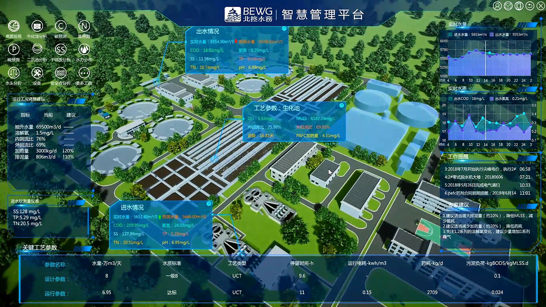 通過云計算、大數據和人工智能等新一代的互聯網IT技術,疊加上北控水務多年積累的行業知識和工藝技術,以及結合北控水務的卓越運營管理理念,開發出一套面向水務行業的智慧水務運營管理平臺BECloudTM,面向北控水務集團的水廠,建立“數字化”應用和標準化運營體系,實現運營管理能力的深度提升。未來將運營管理平臺從集團內,推動集團外,不僅提升集團智慧水務核心競爭能力,同時還賦能給同行企業,提高整體水務行業的運營水平。