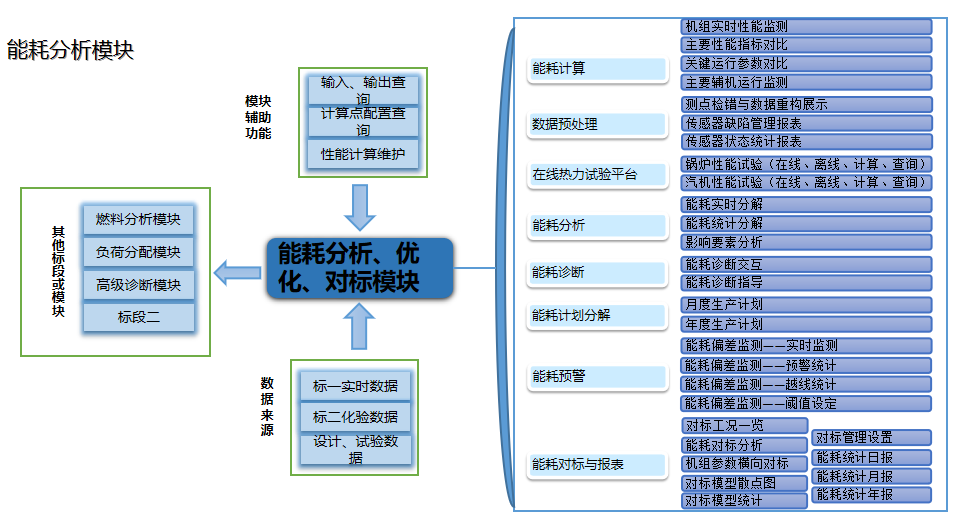 能耗分析模塊:設備性能計算,性能劣化分析、診斷,運行優化指導。能耗計算實現線上試驗比對,試驗工況計算精度小于1%,并驗證了標桿庫的有效性。實時分析電網輔助服務指標,幫助項目公司減少考核損失,提高經濟效益。采用仿真優化的技術路線替代人工經驗,實現控制回路參數優化。