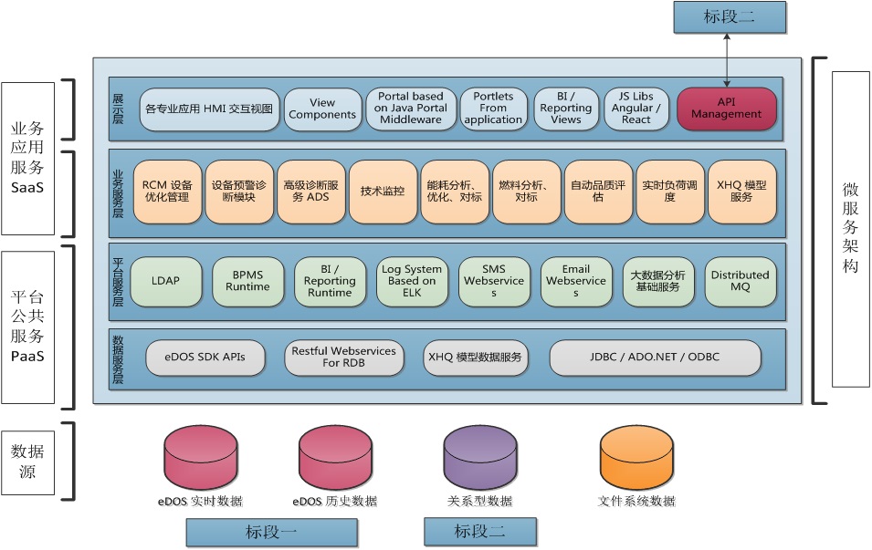 3、 CSASS系統整體實施采用工業互聯網平臺功能架構,利用工業大數據處理、分析技術,采用微服務框架,基于工業大數據系統,PaaS層得以實現對邊緣層、IaaS層產生的電廠海量數據進行高質量的傳輸、存儲與管理。另一方面,利用工業數據建模與分析技術,將現場海量數據進行模型搭建,支撐電廠各種分析應用場景的實現。通過傳感器與數據分析技術,對電廠運行狀況、設備自身狀態進行實施采集、建模、分析,從而實現在線監測、故障診斷預警等服務,創造新的價值,實現企業轉型。