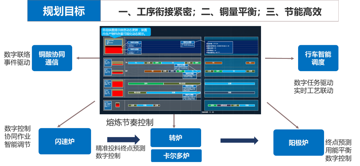 打造中國(guó)首家銅冶煉智能工廠,包括生產(chǎn)管理、供應(yīng)鏈管理、設(shè)備管理、能源管理、安環(huán)管理、輔助決策。
