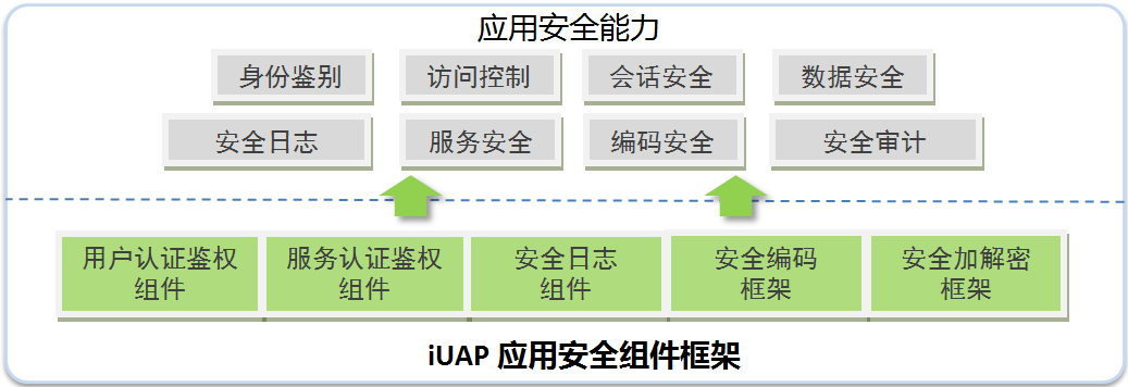 在這些組件及框架的基礎(chǔ)上,應(yīng)用開(kāi)發(fā)可以快速實(shí)現(xiàn)包括身份鑒別、訪問(wèn)控制、會(huì)話安全、數(shù)據(jù)安全、安全日志、安全審計(jì)、服務(wù)安全、編碼安全等應(yīng)用所需的基礎(chǔ)安全能力。