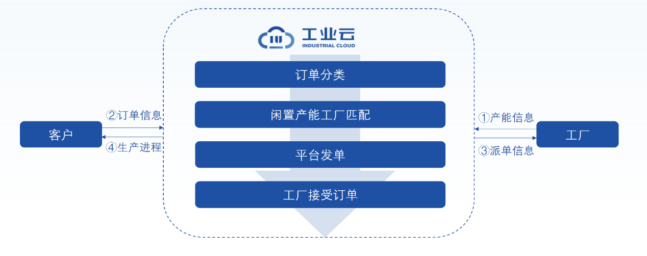 上下游一站式打通,通過C2M模式,銷售側下單后,訂單自動發向產能閑置廠商。