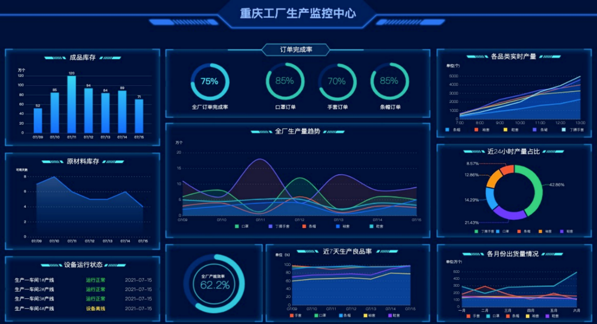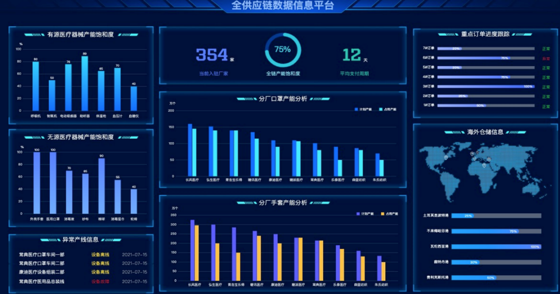 通過生產及產能管理系統,實現集團下游供應商關鍵設備狀態及產能數據上云,結合ERP系統,達到全鏈可視化效果,形成供銷匹配、生產管理、運營管理為一體的全系統管理平臺