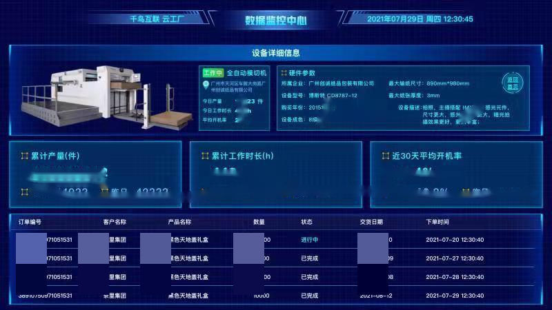 千鳥云印:基于根云平臺(tái),對(duì)設(shè)備開機(jī)率、產(chǎn)能、工作時(shí)長(zhǎng)等實(shí)時(shí)監(jiān)控。通過數(shù)據(jù)分析,將訂單進(jìn)行精準(zhǔn)拆分,高效調(diào)配生產(chǎn)資源,實(shí)現(xiàn)跨工廠的高效協(xié)同。