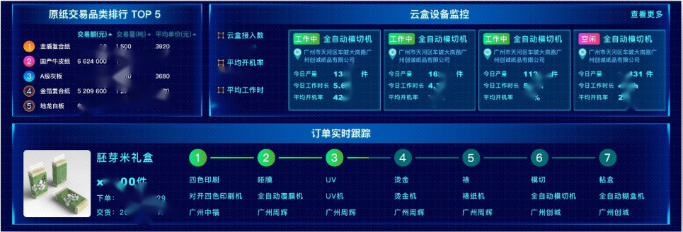 基于平臺(tái)及MES系統(tǒng)實(shí)時(shí)監(jiān)控訂單,提高訂單交付和原紙供應(yīng)時(shí)效。結(jié)合訂單生產(chǎn)數(shù)據(jù),為千鳥原紙和千鳥回收業(yè)務(wù)提供支撐。