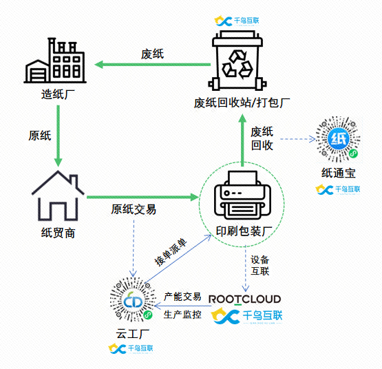 色,實(shí)現(xiàn)廢紙回收、原紙采購(gòu)和包裝訂單三大交易服務(wù)的數(shù)字化,形成從包裝