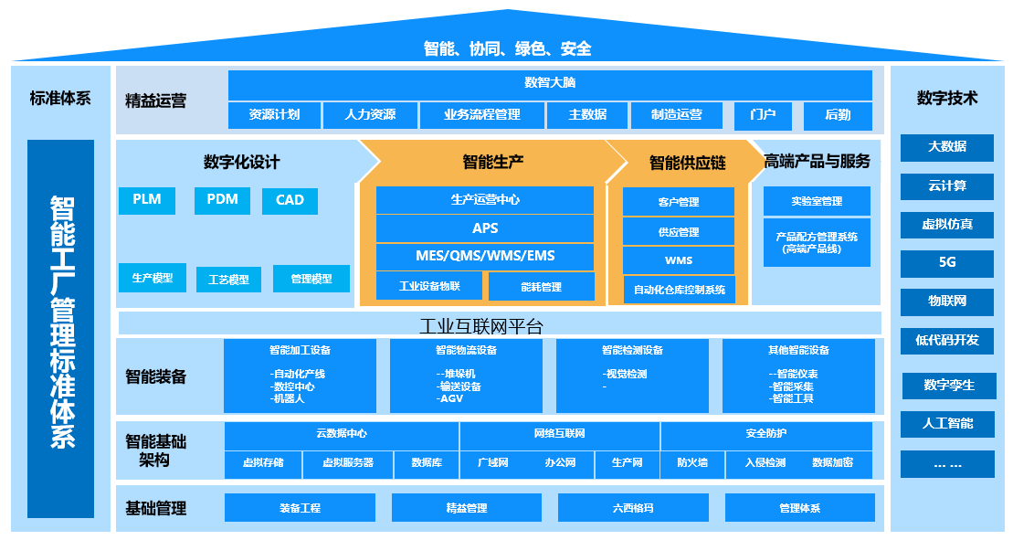 以智能、協(xié)同、綠色、安全的建設(shè)目標(biāo)為出發(fā)點(diǎn),本項(xiàng)目重點(diǎn)實(shí)現(xiàn)生產(chǎn)制造過程的智能化,智造全流程全要素?cái)?shù)字化,總部與基地協(xié)同制造,安全及綠色用能管理,打造全連接智能工廠,未來綜合研發(fā)能力、工程能力、營銷能力、供應(yīng)鏈能力提升,實(shí)現(xiàn)智能工廠戰(zhàn)略目標(biāo)。