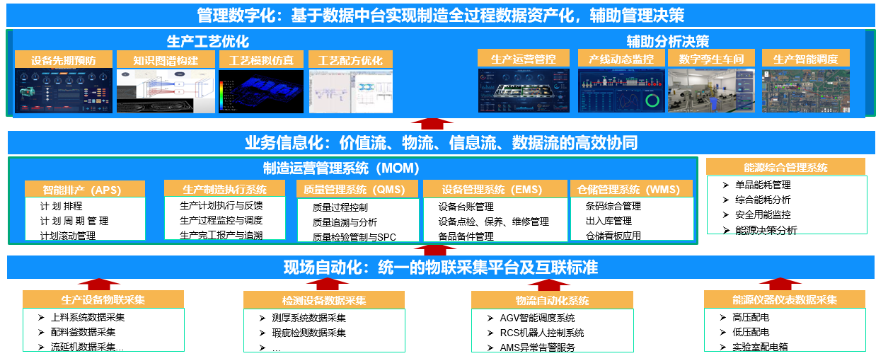 通過智能工廠建設(shè),實(shí)現(xiàn)生產(chǎn)計(jì)劃與調(diào)度的精準(zhǔn)控制、消除波動、持續(xù)優(yōu)化、降低成本的價(jià)值流生產(chǎn)方式,最終實(shí)現(xiàn)全廠均衡、安全、高效、綠色生產(chǎn),達(dá)到“保證質(zhì)量、提高效率、降低勞動強(qiáng)度和成本”的業(yè)務(wù)目標(biāo)。