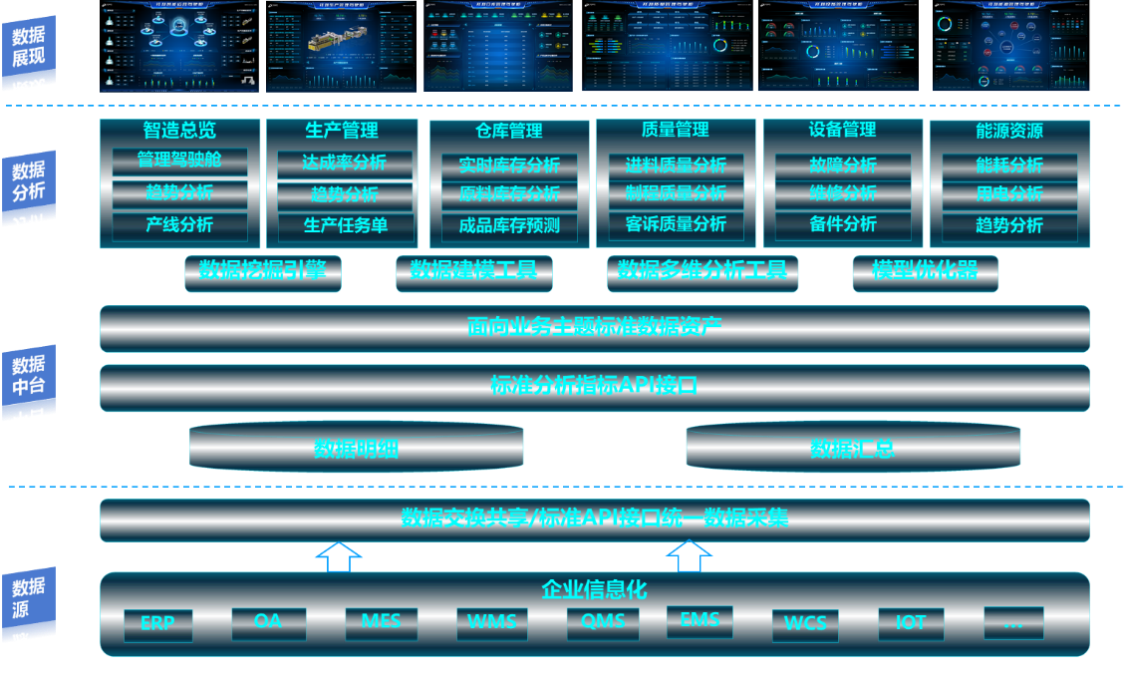 建設(shè)信息集成平臺,向上支撐集團(tuán)戰(zhàn)略管控要求、滿足企業(yè)經(jīng)營管理者運(yùn)營要求,向下與生產(chǎn)過程實(shí)時(shí)數(shù)據(jù)高度集成,將工廠基地和集團(tuán)相對獨(dú)立的信息系統(tǒng)連接成一個(gè)完整可靠、高效協(xié)同的整體。