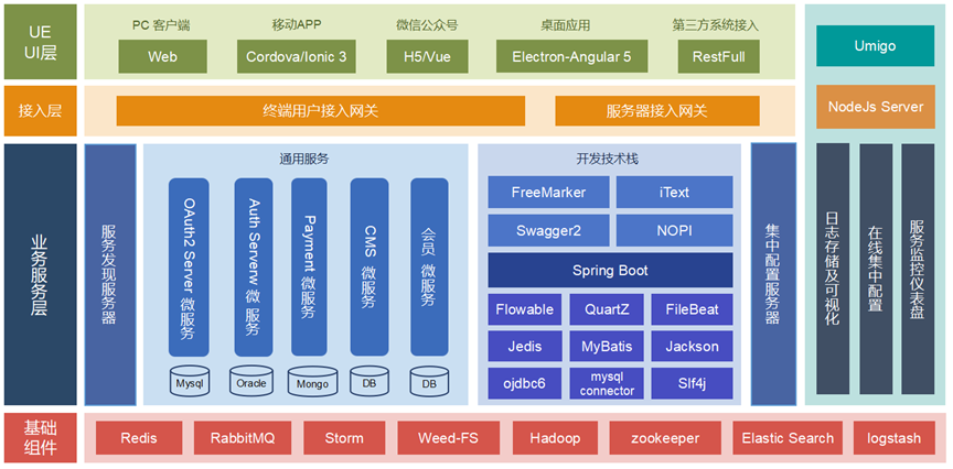 2、實現功能的服務化:系統采用的JAVA+Springboot+Spring Cloud微服務套件,實現了各位業務之間的組件化和服務化,每個服務可用單獨部署和測試,降低了各個業務之間的耦合性。