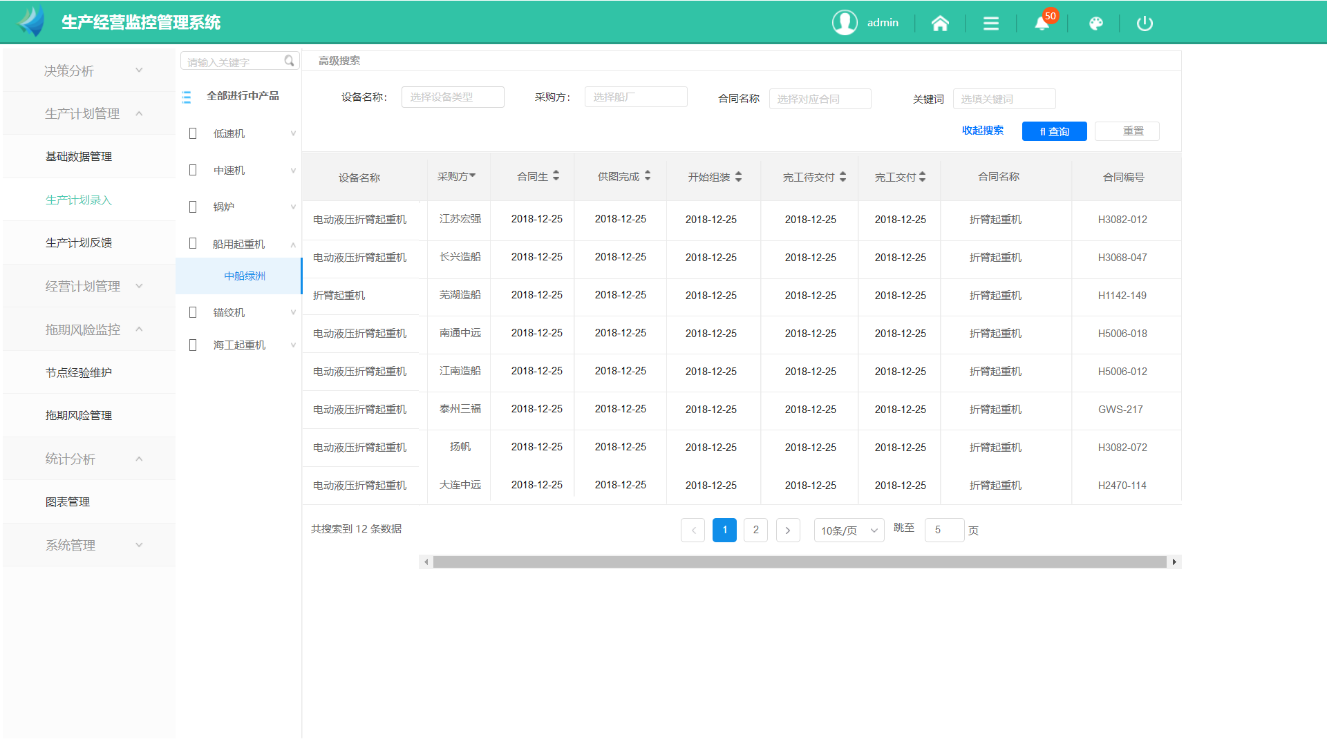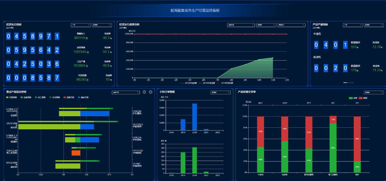 該模塊主要包括企業(yè)及其配套企業(yè)看板,企業(yè)看板中,展示配套企業(yè)的合同比例、總金額比例、訂單情況,生產(chǎn)狀態(tài)情況,拖期風險清單,拖期產(chǎn)品詳情(承接方、采購方、設備類型、當前節(jié)點、狀態(tài)),拖期比例,平均拖期天數(shù)。在非標件配套企業(yè)看板中,展示合同數(shù)量,合同總金額,月度、在跟蹤、手持訂單情況,外委非標件的生產(chǎn)狀態(tài)詳情,拖期風險清單,拖期詳情等核心信息。