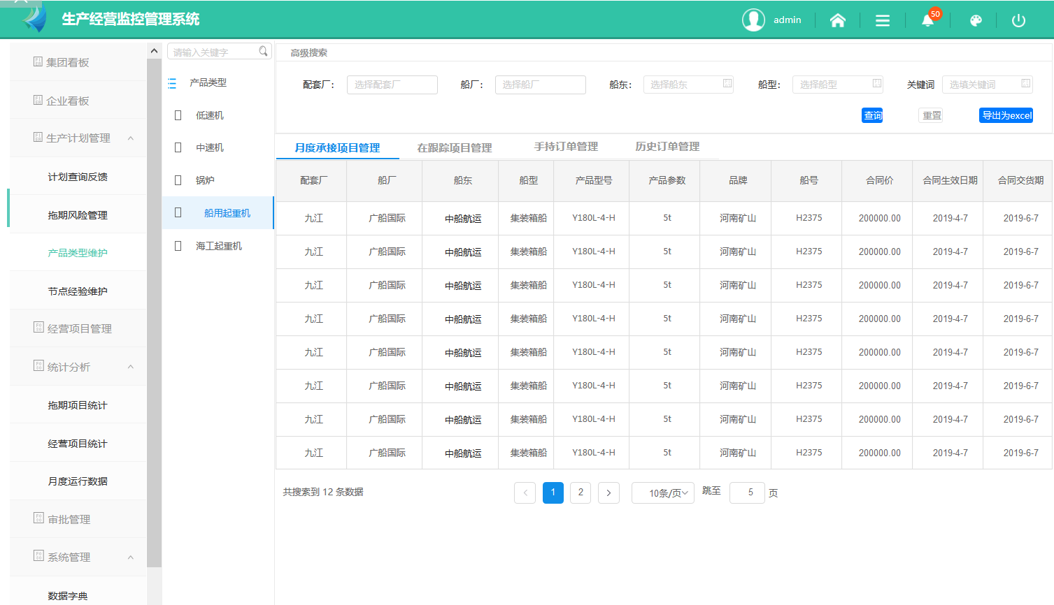 其中月度承接項目管理定義為月度新增的生產(chǎn)計劃;在跟蹤項目管理定義為尚未形成合同簽訂的項目;手持訂單管理定義為已簽訂合同尚未完成交付的項目;歷史訂單管理定義為已完成交付的項目。
