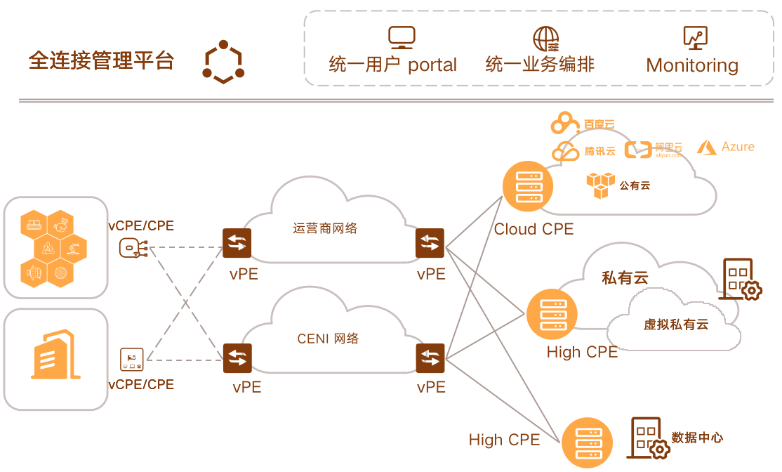 包括CPE、VPE、端局云、邊緣計(jì)算節(jié)點(diǎn)、光傳輸鏈路和數(shù)據(jù)中心。實(shí)現(xiàn)網(wǎng)絡(luò)、計(jì)算和存儲資源的監(jiān)測、配置。
