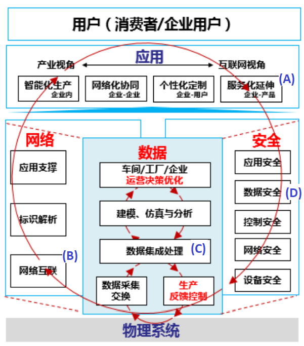 參考下圖,本方案對應(yīng)AII工業(yè)互聯(lián)網(wǎng)體系架構(gòu)圖中的位置、作用及相關(guān)關(guān)系如下: