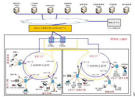 ? 車間工業互聯網基礎網絡建設,對工廠車間生產線的所有設備,通過工業PON網絡進行網絡互聯;