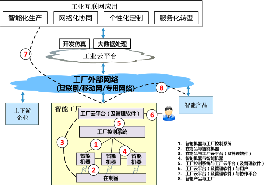 本解決方案屬于工業互聯網網絡體系架構中的智能工廠內部網絡,具體對應上面架構圖中的1、2、3、5種網絡連接。采用工業PON網絡對工廠車間生產線的所有設備進行網絡互聯,然后對設備進行工業數據采集,并傳輸到控制中心,并在控制中心對工廠設備運行狀態進行展示和預測分析。