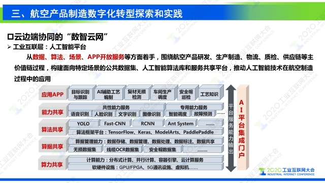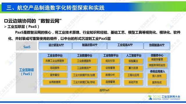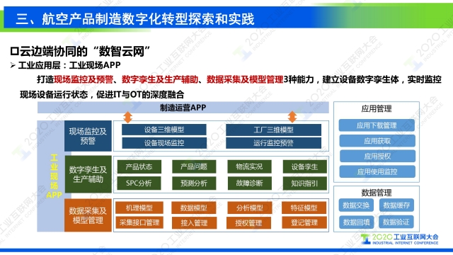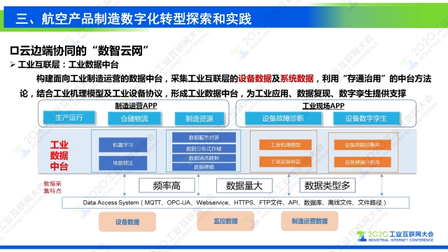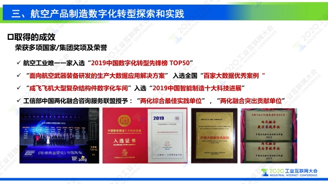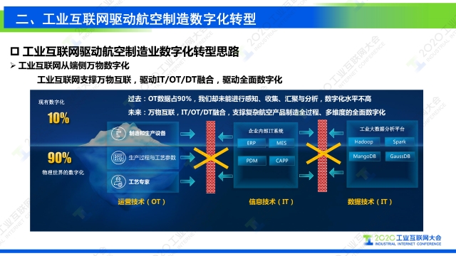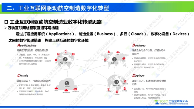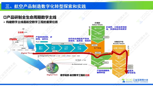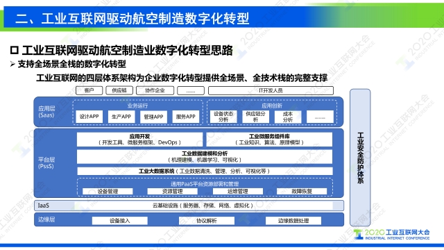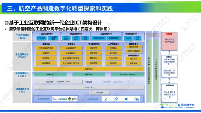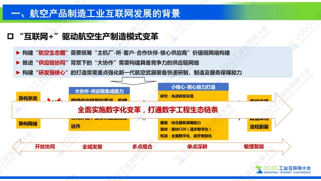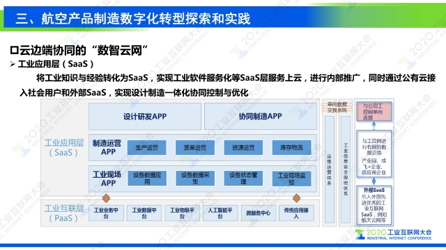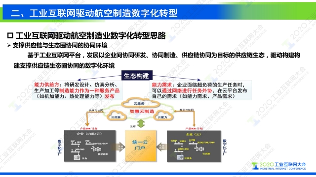在2020工業(yè)互聯(lián)網(wǎng)大會(huì)“工業(yè)互聯(lián)網(wǎng)行業(yè)應(yīng)用”主題論壇上,航空工業(yè)成都飛機(jī)工業(yè)集團(tuán)有限公司流程與信息化部主任謝剛發(fā)表題為《工業(yè)互聯(lián)網(wǎng)支撐復(fù)雜航空產(chǎn)品制造數(shù)字化轉(zhuǎn)型》的演講,圍繞工業(yè)互聯(lián)網(wǎng)分享了航空制造企業(yè)數(shù)字化轉(zhuǎn)型升級(jí)路徑。