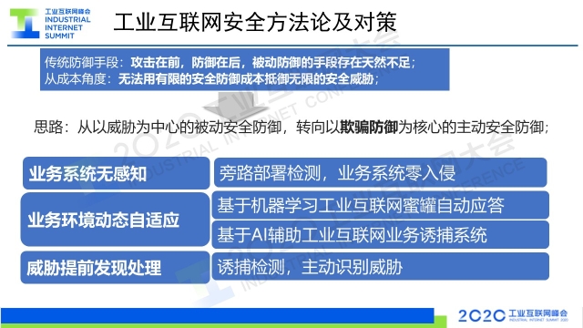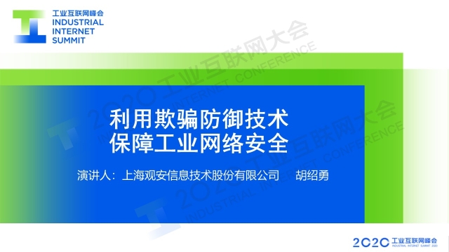 8月30日下午,在2020工業互聯網大會“工業互聯網安全”主題論壇上,上海觀安信息技術股份有限公司副總裁胡紹勇以《利用欺騙防御技術 保障工業網絡安全》為題作演講,分享了以欺騙防御技術為核心的主動安全防御理念。