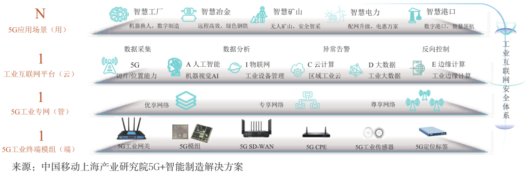 “1+1+1+N”的產(chǎn)品能力體系,即 OnePower包含一系列5G工業(yè)終端模組、一張5G工業(yè)專(zhuān)網(wǎng)、一個(gè)OnePower工業(yè)互聯(lián)網(wǎng)平臺(tái),以及N個(gè)5G應(yīng)用場(chǎng)景。其中,一系列5G工業(yè)終端模組包括新型工業(yè)智能網(wǎng)關(guān)(現(xiàn)場(chǎng)級(jí))、5G工業(yè)模組、工業(yè)傳感器、5G 無(wú)線終端設(shè)備(Data Transfer unit,DTU)等;一張5G工業(yè)專(zhuān)網(wǎng)包括新型工業(yè)智能網(wǎng)關(guān)(工廠級(jí))、高質(zhì)量外網(wǎng)、工業(yè)標(biāo)識(shí)解析和遞歸等;一個(gè)OnePower工業(yè)互聯(lián)網(wǎng)平臺(tái)主要是面向中小微型企業(yè)提供云化工業(yè)應(yīng)用,面向政府單位提供區(qū)域型工業(yè)互聯(lián)網(wǎng)平臺(tái),為政府施策提供數(shù)字化服務(wù),并幫助地方企業(yè)轉(zhuǎn)型及上云,面向行業(yè)頭部企業(yè)提供工業(yè)互聯(lián)網(wǎng)行業(yè)子平臺(tái),結(jié)合行業(yè)特色應(yīng)用,助力企業(yè)數(shù)字化轉(zhuǎn)型;N個(gè)5G應(yīng)用場(chǎng)景包括智慧工廠、智慧礦山、智慧電力、智慧冶金、智慧石化等。