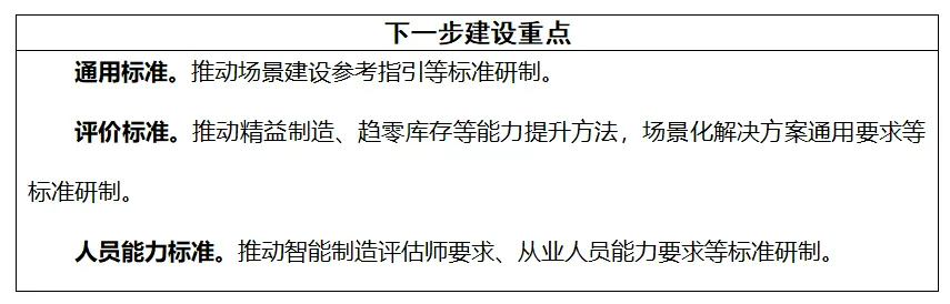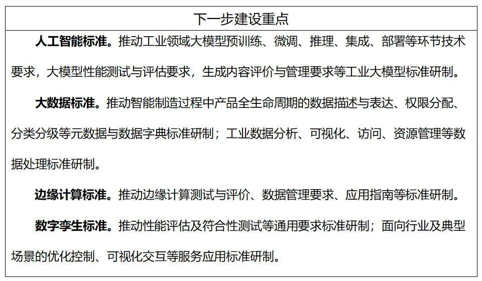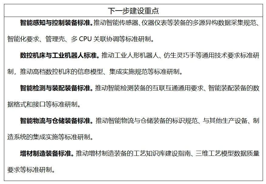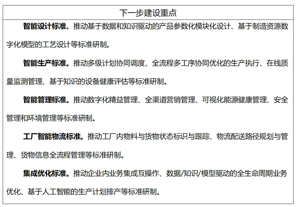到2026年,制修訂100項(xiàng)以上國(guó)家標(biāo)準(zhǔn)、行業(yè)標(biāo)準(zhǔn),構(gòu)建適應(yīng)新型工業(yè)化發(fā)展的智能制造標(biāo)準(zhǔn)體系。加快制定智能檢測(cè)、智能物流等智能裝備標(biāo)準(zhǔn),研發(fā)設(shè)計(jì)、生產(chǎn)制造等工業(yè)軟件標(biāo)準(zhǔn),智能設(shè)計(jì)、智能管理等智能工廠標(biāo)準(zhǔn),供應(yīng)鏈建設(shè)、供應(yīng)鏈運(yùn)營(yíng)等智慧供應(yīng)鏈標(biāo)準(zhǔn),數(shù)字孿生裝備、人工智能工業(yè)應(yīng)用、工業(yè)數(shù)據(jù)流通等智能賦能技術(shù)標(biāo)準(zhǔn),網(wǎng)絡(luò)協(xié)同制造、產(chǎn)銷(xiāo)一體化運(yùn)營(yíng)等智能制造新模式標(biāo)準(zhǔn),工業(yè)無(wú)線網(wǎng)絡(luò)、工業(yè)網(wǎng)絡(luò)融合等工業(yè)網(wǎng)絡(luò)標(biāo)準(zhǔn),探索標(biāo)準(zhǔn)研制新方法,固化成功經(jīng)驗(yàn)和創(chuàng)新成果,形成典型場(chǎng)景系統(tǒng)解決方案標(biāo)準(zhǔn),引導(dǎo)企業(yè)應(yīng)用標(biāo)準(zhǔn)指導(dǎo)實(shí)踐,構(gòu)建企業(yè)智能制造標(biāo)準(zhǔn)體系,推動(dòng)智能制造高質(zhì)量發(fā)展。