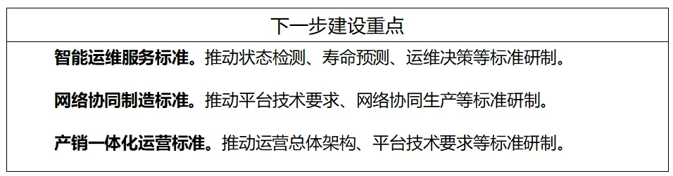 大規(guī)模個(gè)性化定制標(biāo)準(zhǔn)主要包括通用要求、需求交互要求、設(shè)計(jì)要求、生產(chǎn)要求等標(biāo)準(zhǔn);智能運(yùn)維服務(wù)標(biāo)準(zhǔn)主要包括通用要求、數(shù)據(jù)接口、狀態(tài)監(jiān)測(cè)、故障診斷、壽命預(yù)測(cè)、運(yùn)維決策等標(biāo)準(zhǔn);網(wǎng)絡(luò)協(xié)同制造標(biāo)準(zhǔn)主要包括平臺(tái)技術(shù)要求、資源模型要求、協(xié)同經(jīng)營(yíng)管理、網(wǎng)絡(luò)協(xié)同設(shè)計(jì)、網(wǎng)絡(luò)協(xié)同生產(chǎn)等標(biāo)準(zhǔn);產(chǎn)銷(xiāo)一體化運(yùn)營(yíng)主要包括運(yùn)營(yíng)總體架構(gòu)、平臺(tái)技術(shù)要求、數(shù)據(jù)分類(lèi)規(guī)范等標(biāo)準(zhǔn);其他主要包括上述四類(lèi)以外的智能制造新模式的通用要求和服務(wù)交付等標(biāo)準(zhǔn)。
