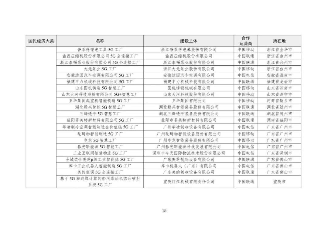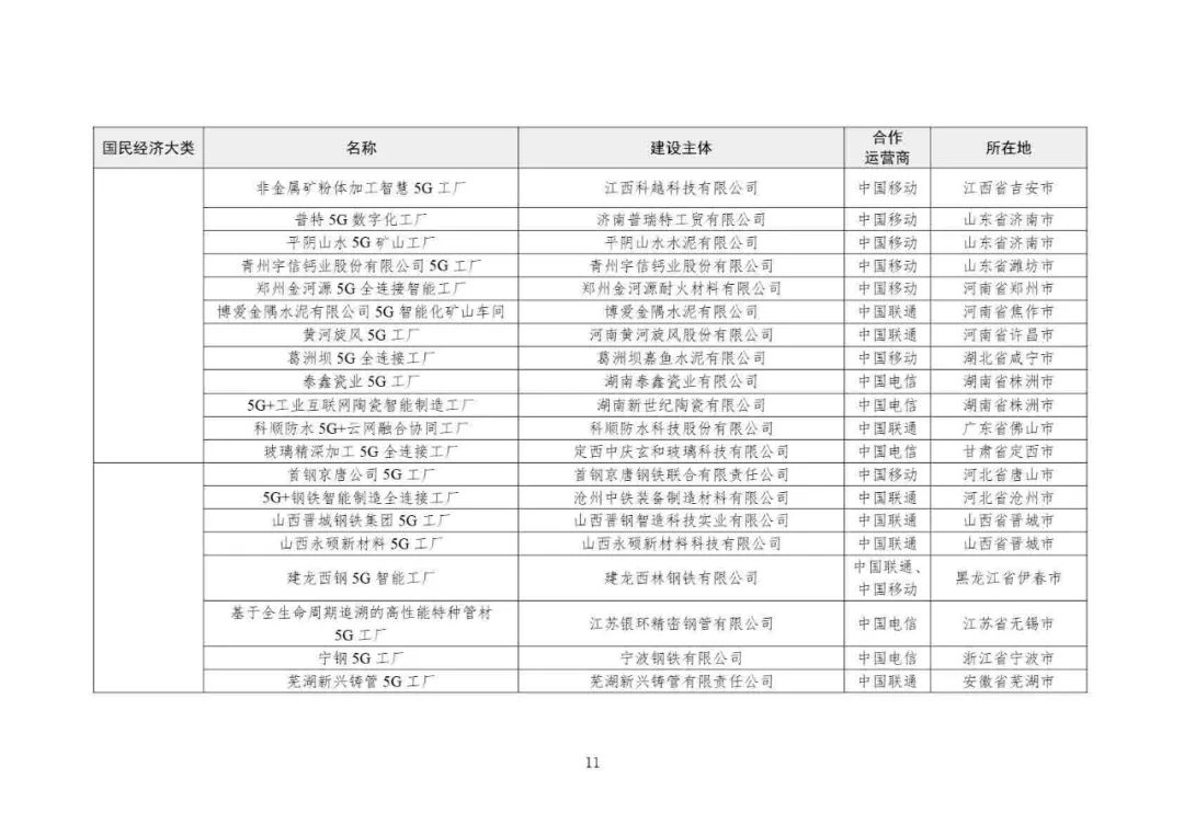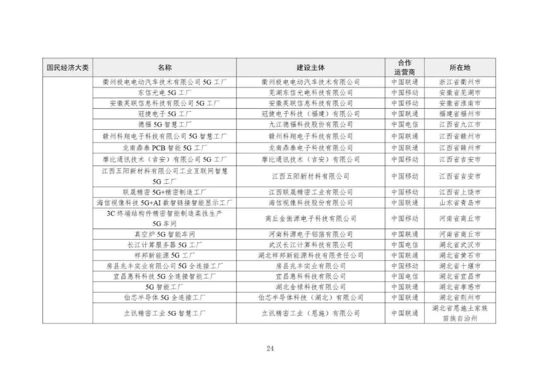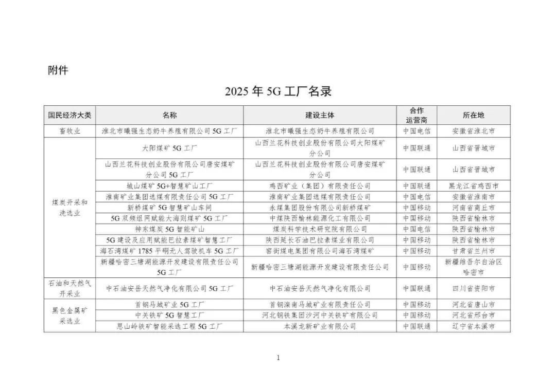 2025年5G工廠名錄: