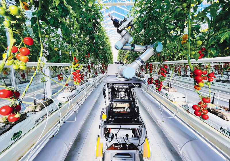 加快人工智能技術與各行各業、各種應用場景深度融合,對于推動經濟社會高質量發展具有重要意義。圖為2024年11月29日,智能育種機器人“吉兒”在位于北京的一個現代化商業溫室中進行番茄自動雜交授粉操作。 新華社發 中國科學院遺傳與發育生物學研究所供圖