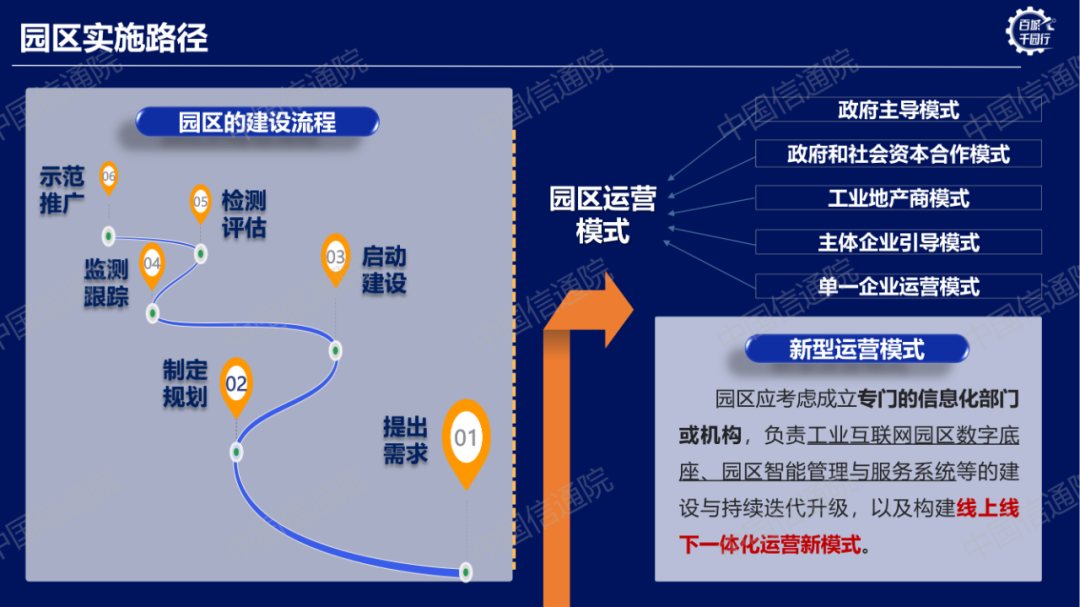 工業互聯網園區對園區運營者信息化服務水平、專業水平提出了非常高的要求,在傳統園區運營模式基礎上,園區應考慮成立專門的信息化部門或機構,負責工業互聯網園區數字底座、園區智能管理與服務系統等的建設與持續迭代升級,以及構建線上線下一體化運營新模式。