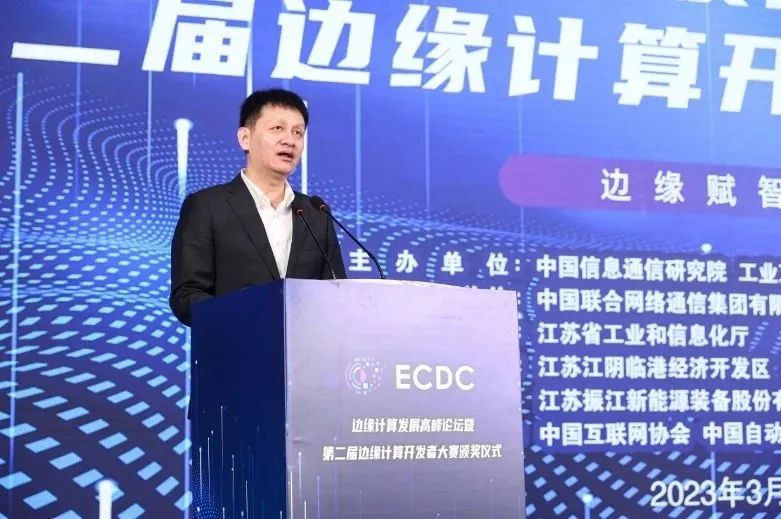 2023年3月23日,由中國信息通信研究院(簡稱“中國信通院”)、工業(yè)互聯(lián)網(wǎng)產(chǎn)業(yè)聯(lián)盟(簡稱“AII”)、邊緣計(jì)算產(chǎn)業(yè)聯(lián)盟(簡稱“ECC”)共同主辦,江蘇省工業(yè)和信息化廳指導(dǎo),江蘇江陰臨港經(jīng)濟(jì)開發(fā)區(qū)、南京理工大學(xué)、中國聯(lián)合網(wǎng)絡(luò)通信有限公司江蘇省分公司、江蘇振江新能源裝備股份有限公司等共同承辦的邊緣計(jì)算發(fā)展高峰論壇暨第二屆邊緣計(jì)算開發(fā)者大賽頒獎(jiǎng)儀式在江蘇省江陰市舉行。工業(yè)和信息化部信息通信管理局業(yè)務(wù)資源處處長趙陽,中國信通院總工程師敖立,江蘇省工業(yè)和信息化廳二級(jí)巡視員常如平,無錫市委常委、江陰市委書記許峰等領(lǐng)導(dǎo)出席活動(dòng)并致辭。中國信通院技術(shù)與標(biāo)準(zhǔn)研究所副所長湯立波主持本次活動(dòng)。