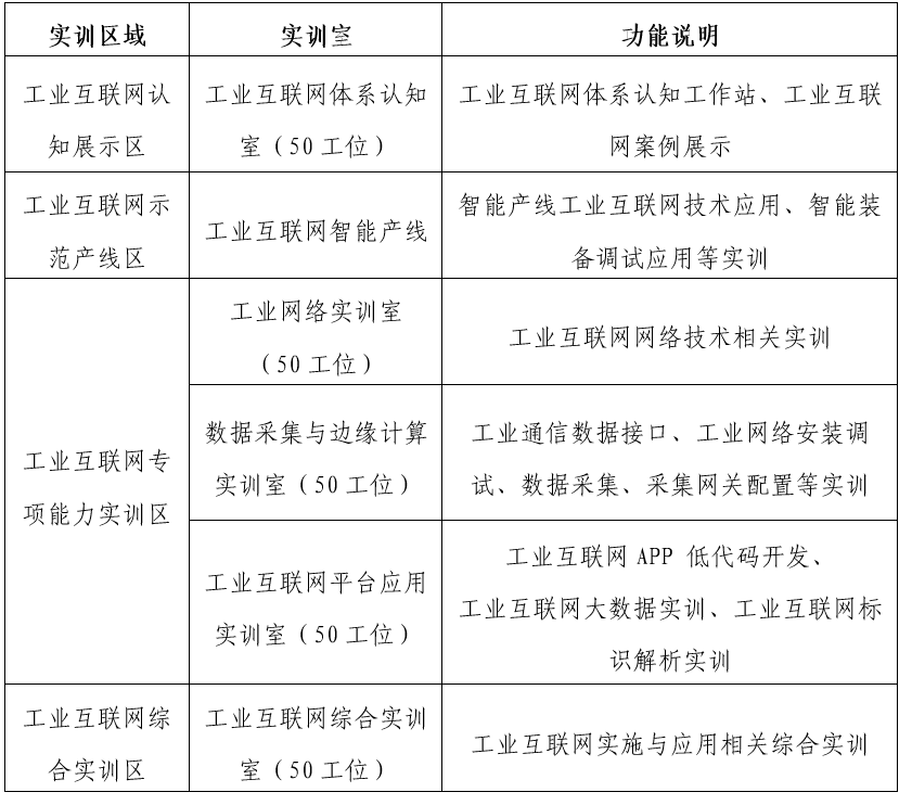 工業(yè)互聯(lián)網(wǎng)專項(xiàng)能力實(shí)訓(xùn)區(qū)域:工業(yè)互聯(lián)網(wǎng)專項(xiàng)能力實(shí)訓(xùn)區(qū)將規(guī)劃有工業(yè)網(wǎng)絡(luò)實(shí)訓(xùn)室、數(shù)據(jù)采集與邊緣計(jì)算實(shí)訓(xùn)室和工業(yè)互聯(lián)網(wǎng)平臺(tái)應(yīng)用實(shí)訓(xùn)室等實(shí)訓(xùn)環(huán)境,基于技術(shù)領(lǐng)域視角,覆蓋了工業(yè)互聯(lián)網(wǎng)技術(shù)領(lǐng)域的感知控制層、網(wǎng)絡(luò)層、平臺(tái)層、應(yīng)用層的實(shí)訓(xùn)教學(xué),能夠讓學(xué)生基本掌握工業(yè)互聯(lián)網(wǎng)平臺(tái)實(shí)施部署、運(yùn)營(yíng)維護(hù)、技術(shù)應(yīng)用等專項(xiàng)技術(shù)應(yīng)用能力。