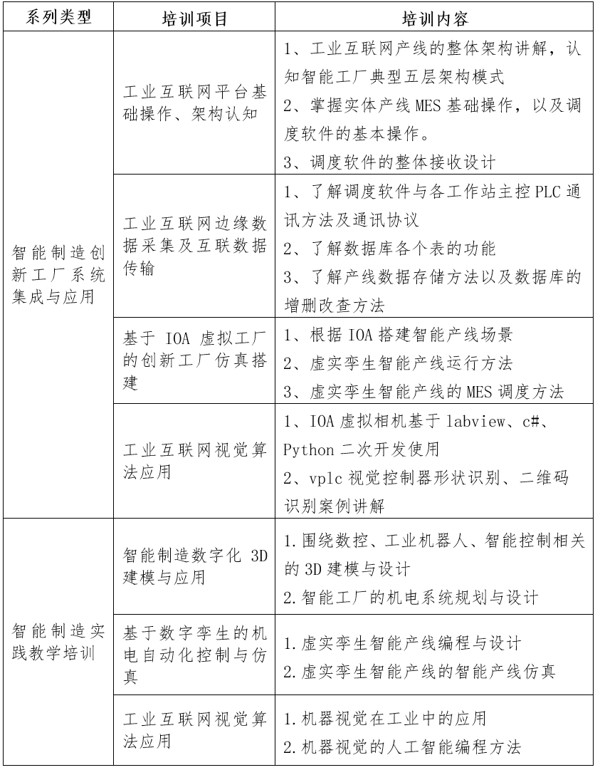 對(duì)接工業(yè)互聯(lián)網(wǎng)產(chǎn)業(yè)鏈關(guān)鍵崗位的核心技能,構(gòu)建新型實(shí)踐、實(shí)訓(xùn)體系,打造工業(yè)互聯(lián)網(wǎng)機(jī)器視覺(jué)實(shí)訓(xùn)中心、工業(yè)互聯(lián)網(wǎng)邊緣服務(wù)實(shí)訓(xùn)中心、工業(yè)數(shù)字孿生實(shí)訓(xùn)中心等,滿足專業(yè)群線上、線下教學(xué)和技術(shù)技能培訓(xùn)服務(wù)需求。