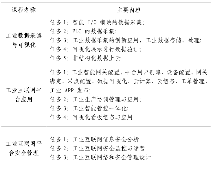 工業(yè)互聯(lián)網(wǎng)平臺(tái)應(yīng)用課程設(shè)置: