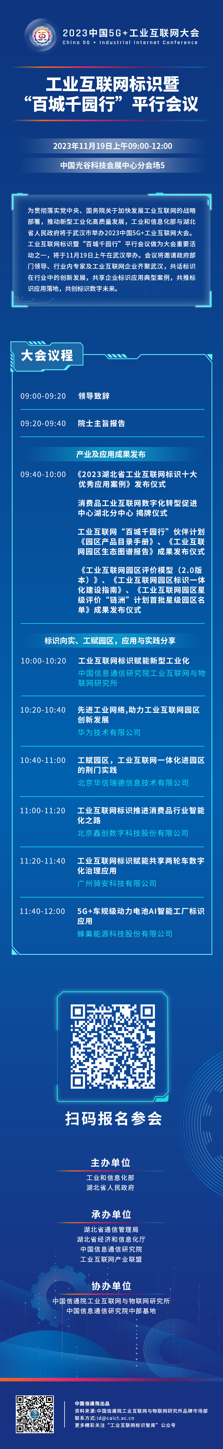 議程速覽 | 2023中國(guó)5G+工業(yè)互聯(lián)網(wǎng)大會(huì)工業(yè)互聯(lián)網(wǎng)標(biāo)識(shí)暨“百城千園行”平行會(huì)議