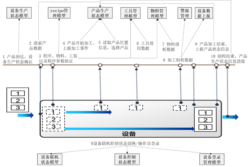 生產(chǎn)設(shè)備信息交互模型是以設(shè)備為中心,從數(shù)字化應(yīng)用角度來看加工產(chǎn)品的生命周期,回答設(shè)備是否可用(比如聯(lián)機(jī)狀態(tài)、控制狀態(tài)、運(yùn)行狀態(tài)模型等),設(shè)備哪些能用(recipe模型、物料模型、工具模型等)、設(shè)備如何好用(設(shè)備數(shù)據(jù)上報(bào)模型、警報(bào)管理模型等)這三個(gè)核心問題。