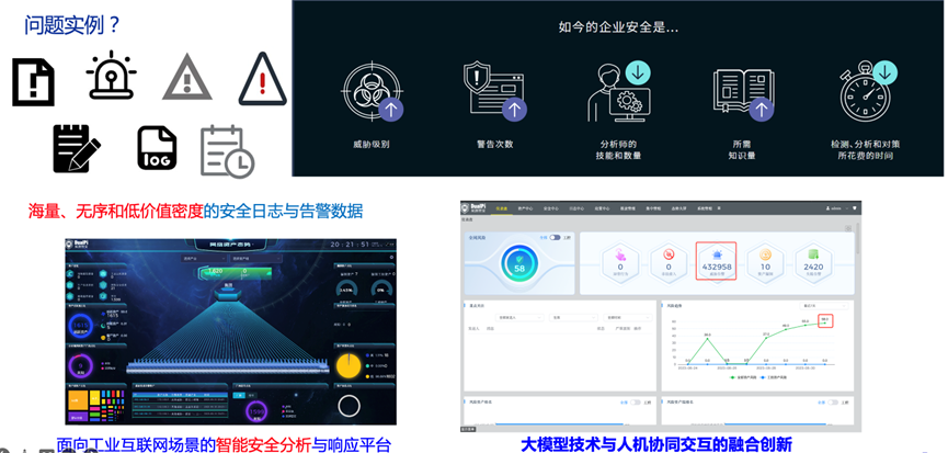 安全組提出構建一個面向工業互聯網場景的智能安全分析與響應平臺,通過工業大模型技術與人機協同的創新應用,研制成套的自主可控基于工業大模型的工業安全運營中心系統,開發針對工業互聯網領域及安全運營需求定制化的模型和系統,通過模型的語義解析和關聯計算,快速從復雜數據中提取高價值信息,生成清晰的網絡安全態勢視圖,使安全運營團隊能夠快速判斷事件的嚴重程度并做出響應。