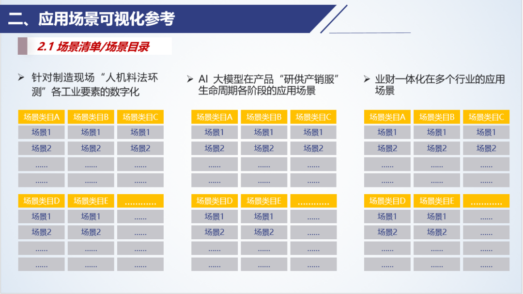 按照特定的順序或類別展示各種應(yīng)用場(chǎng)景的場(chǎng)景列表,企業(yè)和平臺(tái)也需要編制一個(gè)總的場(chǎng)景目錄。