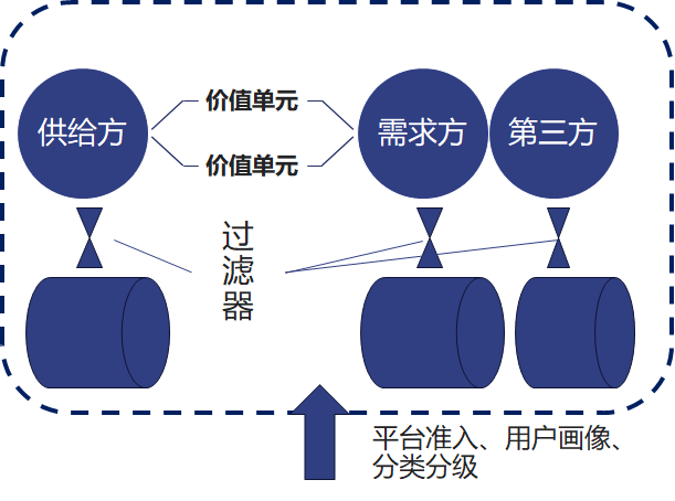 《平臺(tái)革命》提出了“核心互動(dòng)”——一個(gè)平臺(tái)的通用應(yīng)用場(chǎng)景結(jié)構(gòu),即“參與者+價(jià)值單元+過(guò)濾器=核心互動(dòng)”,在此本文稱之為“平臺(tái)的價(jià)值交互場(chǎng)景”。