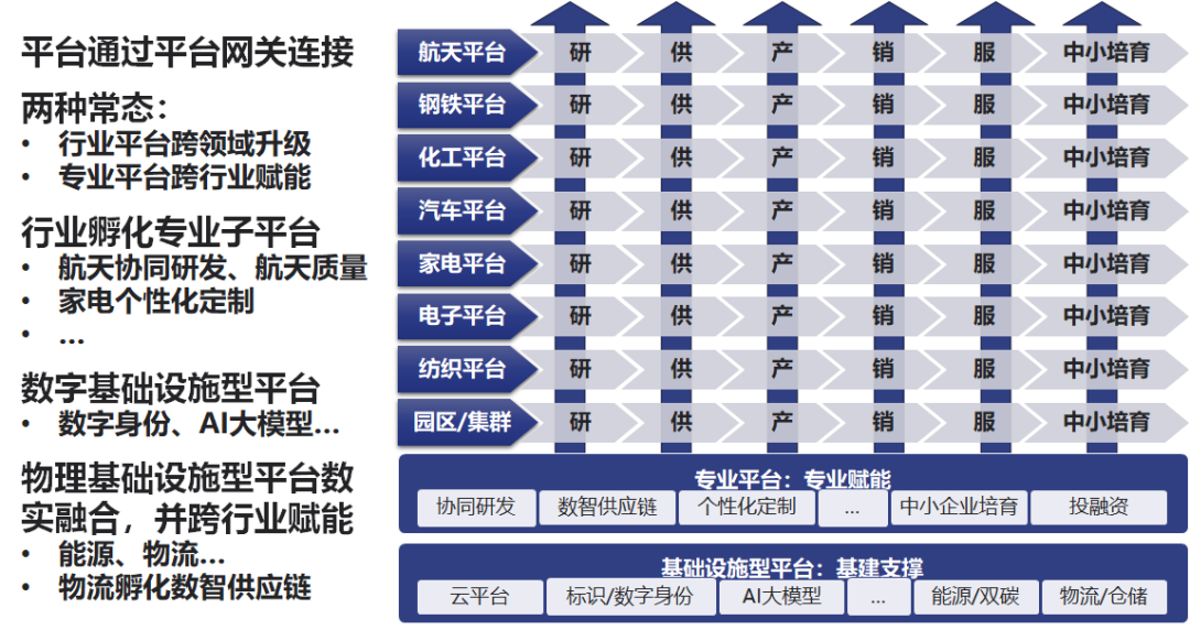 結(jié)構(gòu):顯示基礎(chǔ)設(shè)施如何賦能鏈主企業(yè)平臺(tái)、技術(shù)專業(yè)平臺(tái)等整個(gè)工業(yè)互聯(lián)網(wǎng)平臺(tái)體系。