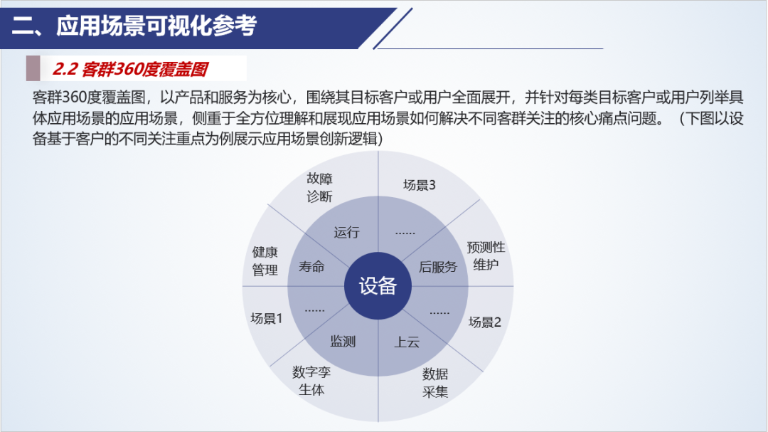 應(yīng)用場(chǎng)景指一個(gè)特定的用戶或客戶環(huán)境,其中包括需求和痛點(diǎn),以及針對(duì)這些需求的解決方案和其產(chǎn)生的效果及價(jià)值。在這個(gè)框架中,客戶和痛點(diǎn)需求代表需求側(cè),而解決方案和效果價(jià)值則偏向供給側(cè),指向如何通過(guò)特定服務(wù)或產(chǎn)品滿足這些需求,創(chuàng)造出實(shí)際價(jià)值。在工業(yè)互聯(lián)網(wǎng)、數(shù)字化轉(zhuǎn)型、產(chǎn)品設(shè)計(jì)等領(lǐng)域,應(yīng)用場(chǎng)景的概念被廣泛應(yīng)用,以確保解決方案緊密貼合實(shí)際需求,實(shí)現(xiàn)最大價(jià)值。