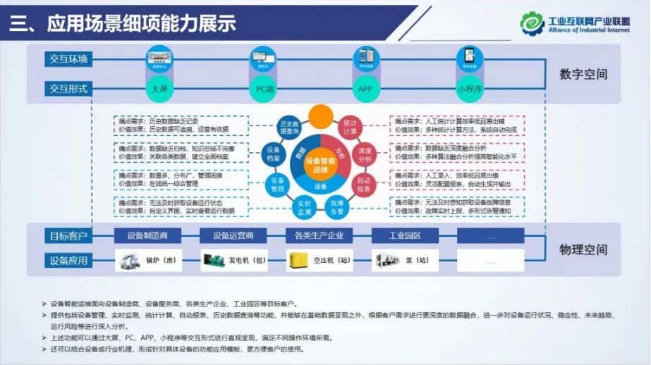 客群360度場景圖示例:深圳智物聯以客群360度場景圖創新設計的設備智能運維的場景圖,通過數實融合(上面是數字空間,下面是物理空間),展示可運維設備的類型、載體和方式。加速客戶方理解其產品和服務。