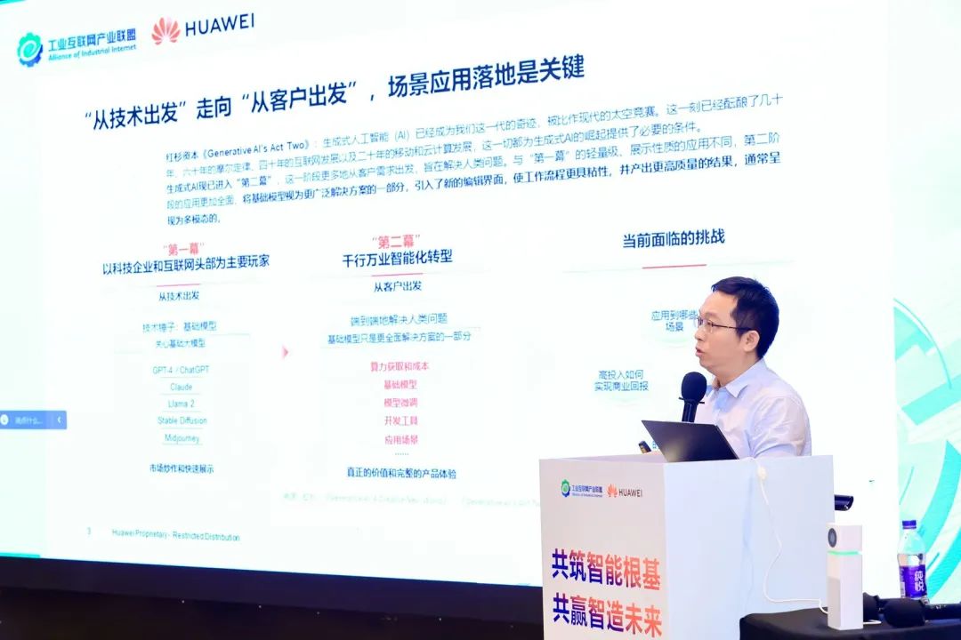 隨后,華為ICT新機(jī)會(huì)孵化部部長(zhǎng)周小紅女士發(fā)表開場(chǎng)致辭。她闡述了AI大模型落地工業(yè)在數(shù)據(jù)、算力、算法上的三個(gè)挑戰(zhàn),并提出四方面的解決之道:一是架構(gòu)先行,分層解耦;二是構(gòu)建計(jì)算、網(wǎng)絡(luò)、存儲(chǔ)全面協(xié)同的先進(jìn)基礎(chǔ)設(shè)施;三是平臺(tái)開放,生態(tài)共贏;四是場(chǎng)景驅(qū)動(dòng),價(jià)值閉環(huán)。中國(guó)作為世界第一工業(yè)大國(guó),有豐富的應(yīng)用場(chǎng)景和數(shù)據(jù)資源,周小紅女士希望產(chǎn)業(yè)各方,攜手共筑智能根基,共贏智造未來(lái)!