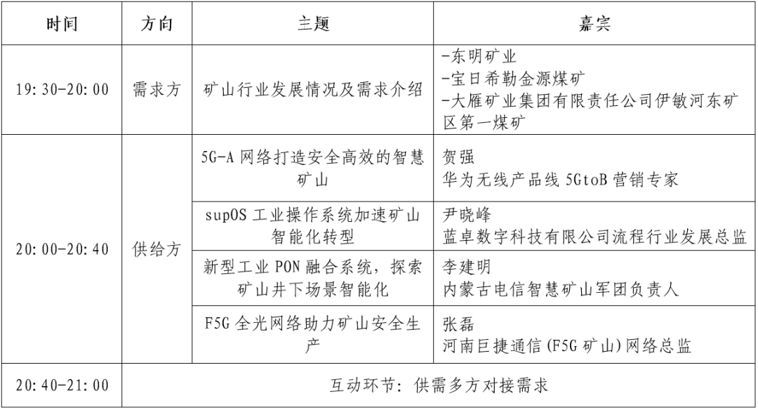 本次沙龍將由聯(lián)盟副秘書長張東主持,擬邀請呼倫貝爾東明礦業(yè)、寶日希勒金源煤礦、敏東一礦負責(zé)人現(xiàn)場分享行業(yè)需求,同時邀請到了華為、中國電信、浙江藍卓、河南巨捷通信等企業(yè)專家介紹其在礦山領(lǐng)域數(shù)智化賦能的的實踐經(jīng)驗,供需雙方將就行業(yè)現(xiàn)狀、實踐路徑、痛點難點現(xiàn)場互動交流,也歡迎各成員單位積極參與。