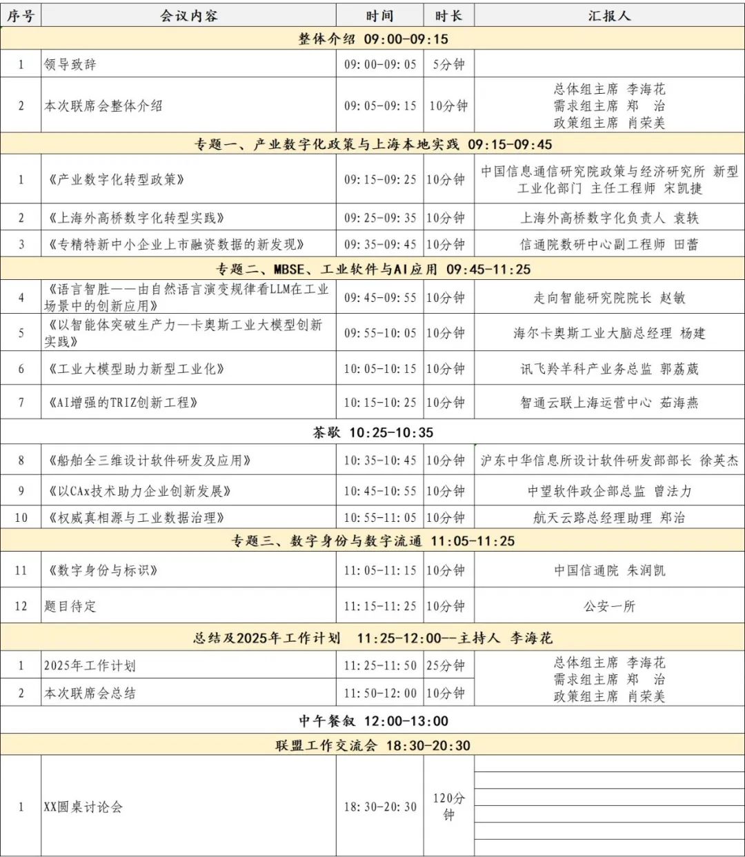 本次全會,總體組、需求組與政策法規(guī)與投融資組召開聯(lián)席會議,就產(chǎn)業(yè)數(shù)字化政策與上海本地實(shí)踐,MBSE、工業(yè)軟件與AI應(yīng)用,數(shù)字身份與數(shù)據(jù)流通三大方向,與聯(lián)盟伙伴進(jìn)行理念碰撞和經(jīng)驗(yàn)分享。