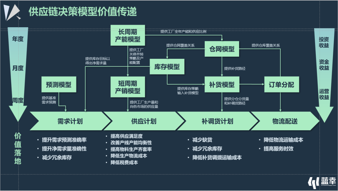 ?藍(lán)幸軟件聯(lián)合創(chuàng)始人COO王健:供應(yīng)鏈優(yōu)化到底如何開展一直是困擾各大企業(yè)的難題。藍(lán)幸借助10多年的超百家頭部企業(yè)的項目實施經(jīng)驗,認(rèn)為供應(yīng)鏈優(yōu)化需自上而下進(jìn)行,因為上層的規(guī)則會對下層的計劃產(chǎn)生很大的影響,如:庫存策略會對主計劃產(chǎn)生影響。所以如何自上向下優(yōu)化供應(yīng)鏈?zhǔn)瞧髽I(yè)供應(yīng)鏈優(yōu)化能力建設(shè)必須回答的問題。本次分享將圍繞自上而下的供應(yīng)鏈優(yōu)化能力如何建設(shè),介紹具體實施方法和成功實踐案例。