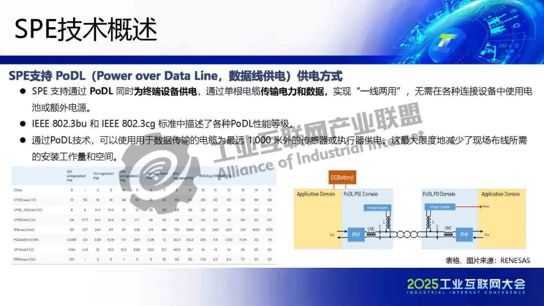 現(xiàn)有TSN芯片MAC可以通過MII等接口與SPE PHY收發(fā)器相連接。數(shù)據(jù)線供電技術(shù)省去獨(dú)立電源線,顯著降低布線復(fù)雜度,推動載具輕量化與集成化發(fā)展。通過單對線高帶寬(10Mbps-1Gbps)和μs級確定性傳輸,重構(gòu)載具通信架構(gòu)。