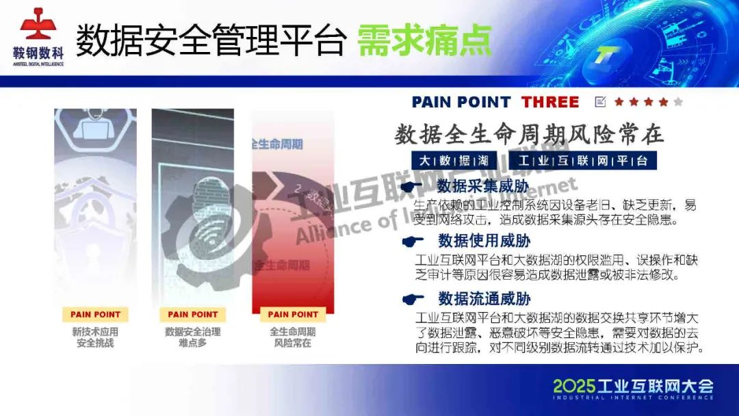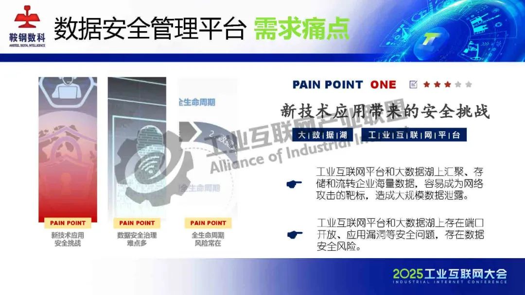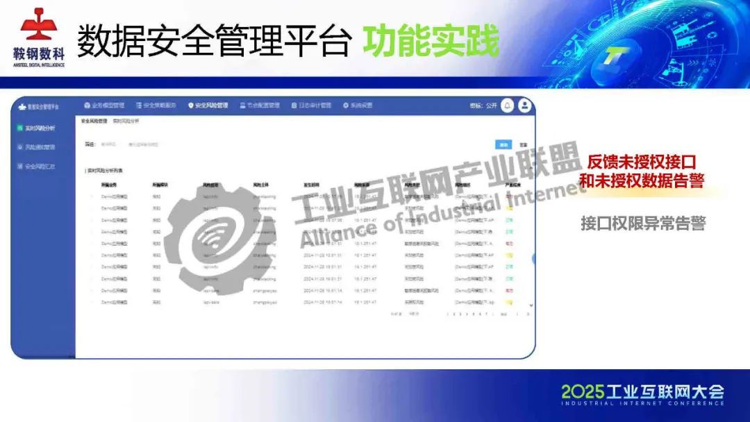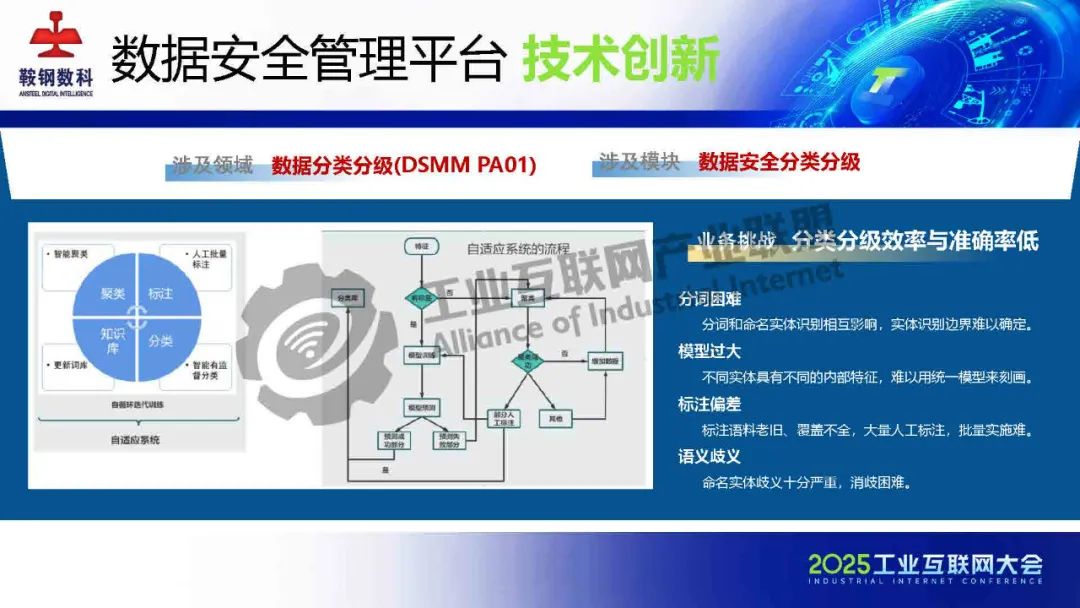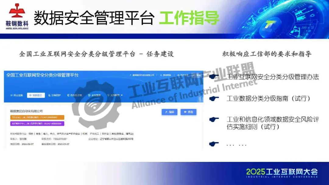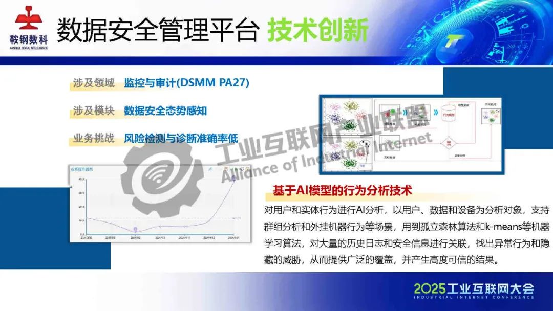 5月23日,在2025工業(yè)互聯(lián)網(wǎng)大會(huì)“新型工業(yè)化網(wǎng)絡(luò)與數(shù)據(jù)安全專題活動(dòng)”上,鞍鋼數(shù)智科技(遼寧)有限公司產(chǎn)品研發(fā)中心網(wǎng)安研發(fā)經(jīng)理韓劍飛發(fā)表了《基于AI的鋼鐵行業(yè)工業(yè)互聯(lián)網(wǎng)數(shù)據(jù)安全管理平臺(tái)的設(shè)計(jì)與實(shí)踐》的主題演講。