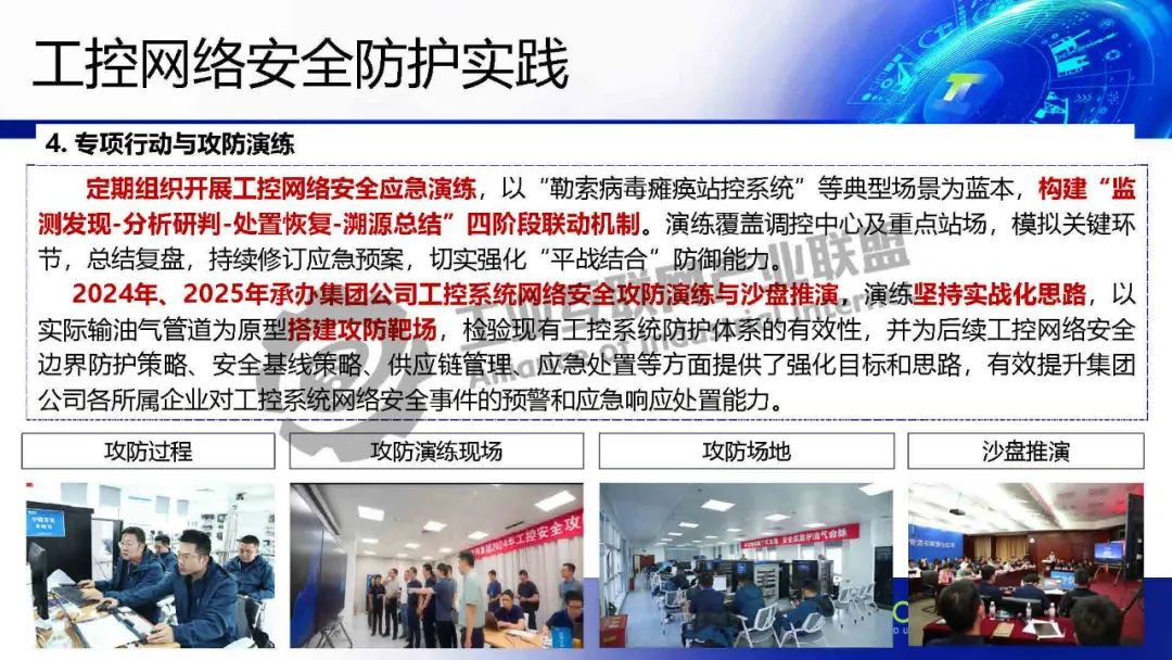 賈立東介紹,目前,國家管網所轄油氣管道近11萬公里,已形成“三縱四橫、連通海外、覆蓋全國”的大型“廣域分布”油氣輸送網絡,管道輸送的成品油、原油、天然氣在全國年消費量占比達到 28%、35%和 60%,成為國民經濟的“能源生命線”。工控網絡安全防護結合大模型助力態勢感知平臺實現對海量工業網絡數據的實時分析,依托油氣管網工控仿真靶場環境進行持續學習、訓練和調優,實現態感平臺智能解讀、事件智能分析研判、智能推薦處置建議。